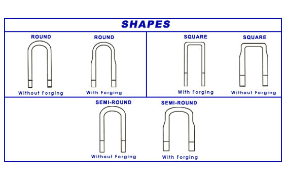The choice of materials is determined by the required SAE Grade and the size of the material and its harden ability. We produce U-Bolts in SAE Grades 2, 3, 4 and 8.